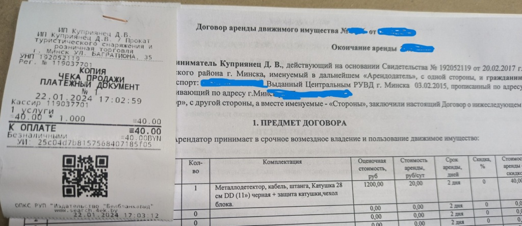 Образец чека, договор