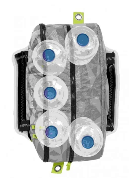 Имеются также наружные карманы на молнии и регулируемый наружный ремень.