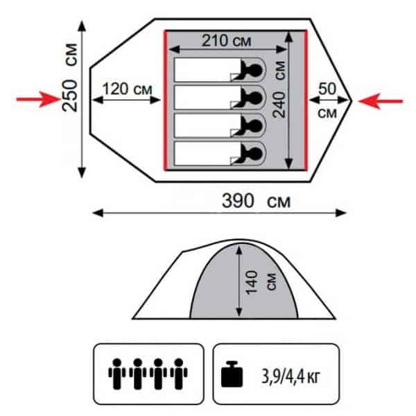 | Водостойкость тента | 4 000 мм вод. ст. |