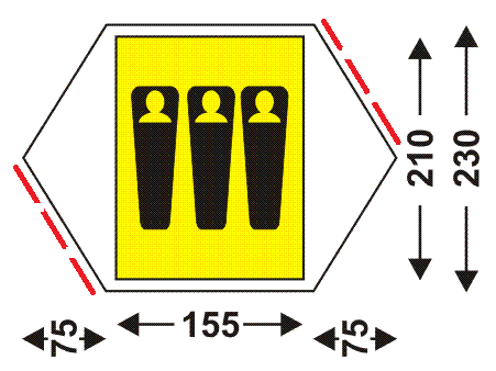 | Габариты | Размеры палатки (ДхШхВ) (см): 305х230х125 Размеры внутренней палатки (ДхШхВ) (см):155х210х120 |