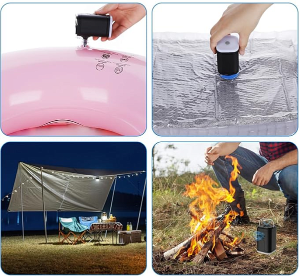 2. Универсальность использования. Насос подходит для подкачки матрасов, мячей, надувных лодок и других предметов. Также фонарик позволяет освещать пространство вокруг палатки в тёмное время суток.