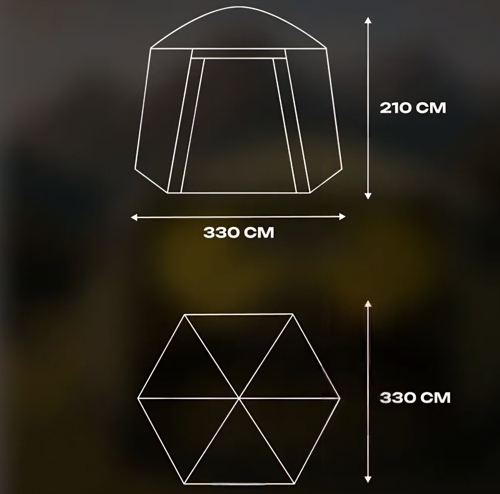 · Многофункциональность: Уникальная конструкция с выходом для трубы позволяет использовать шатер как полевую кухню, палатку для почевки, каторая вмещает 6 человек, летнюю беседку на даче или укрытие для рыбалки. Также это отличный вариант аренды для бассейна.