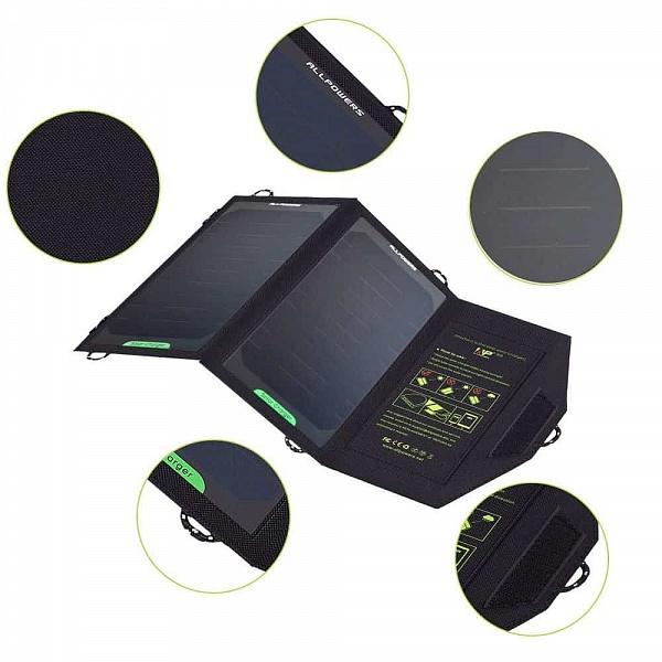 Сложенное устройство имеет размеры 270х170х10 мм, разложенное 260х460х3 мм, вес 300 г. Оно изготовлена из солнечных панелей Sunpower. Подключение для зарядки мобильных устройств осуществляется через Micro USB-порт. Максимальная мощность 10 Вт, напряжение на выходе 5 В. В солнечный день зарядное устройство выдаёт силу тока 1,6 А. Эффективность преобразования солнечной энергии 22-25%. Мобильный телефон заряжается всего за час, смартфон – за 1,5–2,0 часа, планшет – за 2–3 часа.