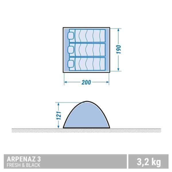 В многодневном путешествии или походе выходного дня вашим хорошим помощником станет удобная трёхместная палатка Quechua Arpenaz Fresh&Black 3. Собираясь втроём на природу, обратитесь за ней в прокат. Несколько дней лёгкая трекинговая палатка будет служить надёжной крышей, убежищем от солнца и ветра, защитой от насекомых и осадков.
