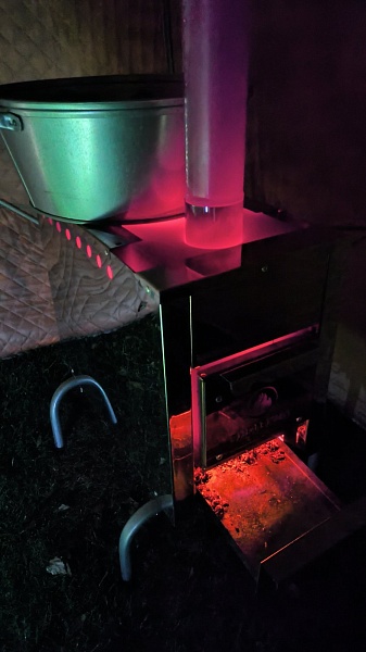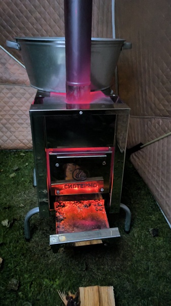 В комплект входят палатка, печь, полки.