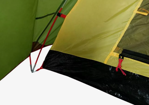 Непромокаемый тент сшит из пропитанного полиуретаном полиэстера. Швы дополнительно проклеены. Ткань внутренней части палатки сшита из «дышащего» полиэстера, не поддерживающего накопление конденсата. Днище из терпаулинга устойчиво к проколам и истиранию. Аренда такой палатки помогает организовать отдых с минимальными потерями времени на обустройство походного лагеря.