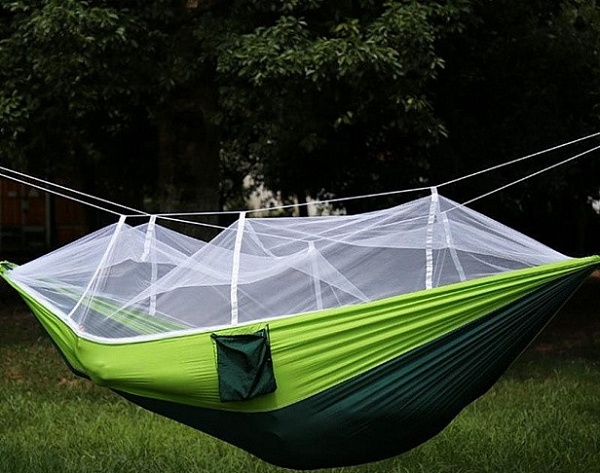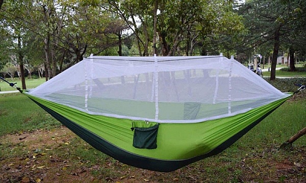 Москитная сетка пришита с одной стороны гамака. С другой стороны она застёгивается на застёжку молнию, так что для насекомых не остаётся даже малейшей дырочки, куда они могли бы пролезть. Сетка очень мелкая, защитит Вас от летающих и ползающих насекомых: комаров, москитов, мух, пчёл, гусениц, жучков и других насекомых, также Вас не будет беспокоить мусор и пыль, разносимая ветром.