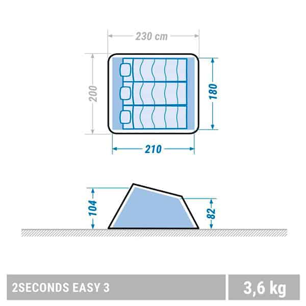 Если место для привала выбрано неудачно, «дом» можно просто взять и перенести на более удобную площадку. Для дальнейшего путешествия палатка собирается за 5 минут. Размеры спального места 200х230 см, высота 104 см. Нужно сложить овальный каркас по схеме, застегнуть фиксаторы и сложить изделие в круглый плоский чехол диаметром 78 см.